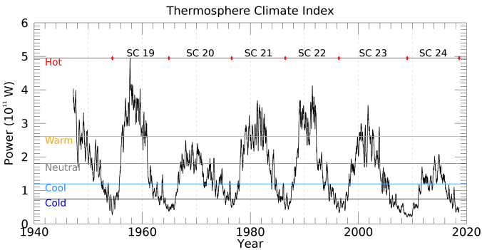 Martin G. Mlynczak, Linda A. Hunt, James M. Russell, B. Thomas Marshall, Thermosphere climate indexes: Percentile ranges and adjectival descriptors, Journal of Atmospheric and Solar-Terrestrial Physics, https://doi.org/10.1016/j.jastp.2018.04.004